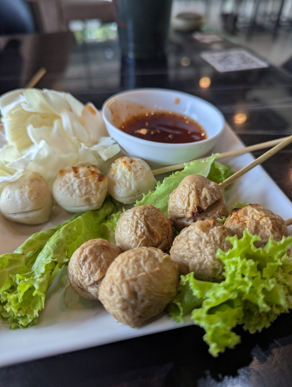 This is Thai luk chin (ลูกชิ้น). I believe they were served at a highway noodle resto between Sarakham and Borabu on a uni trip with Tee last year. I haven’t used the word beeg for more than 20 years; it was Adam’s invention back in the day. Wrinkleh.