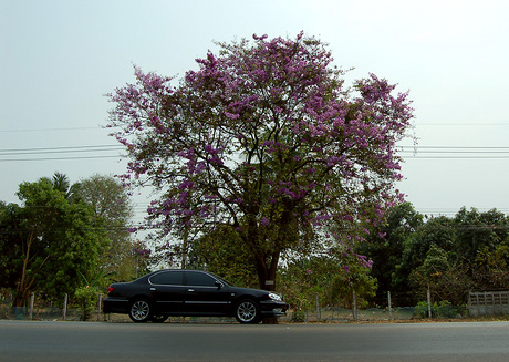 On the road to the next town, these magnificent blossoms are dropping everywhere. Kinda like sakura on steroids.