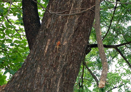 The thing is, it looks like an iguana. Could it be a false chameleon? A quick Google search shows that opinion is split as to whether iguanas can change colors on the spot or not. Whatever the explanation, this particular lizard changed the upper half of his body bright red when he climbed up this tree, right before my very eyes. I had just parked my car (I park under this tree every day) and remembered that my camera was on the back seat, so the timing was lucky.