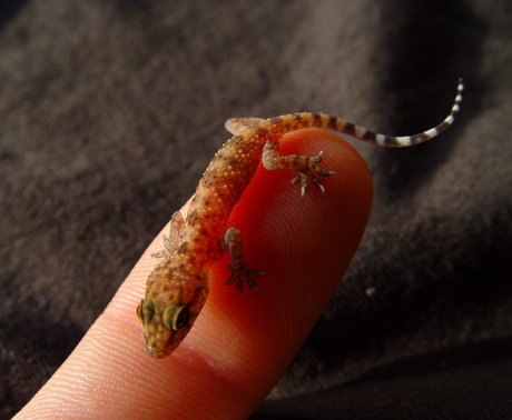 … are falling from my walls onto my bed and the floor. There are hundreds of them, I’m sure, hatching around our house. I’ve seen around 30 or so in the past couple of days, slightly more than an inch long and still learning how to walk. Thus, they fall on my bed from the ceiling. I accidentally crushed one with the screen door yesterday and felt really bad about it. hemidactylus frenatus – the House Gecko, known as “jingjok” in Thailand. Image borrowed from here.