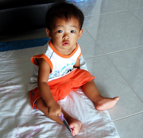 He came home from a trip with mommy and threw a tantrum so long and so hard that he finally barfed all over daddy. Then he nearly wriggled out of daddy’s arms when put in the shower. Then he fell asleep for 30 minutes, woke up in a foul mood, and bit mommy’s shoulder and wouldn’t let go. I cannot imagine what having two will be like.
