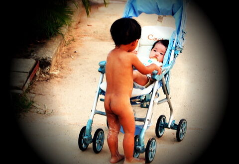 Mina reared back as I was holding her today and smashed the side of her head into my nose so hard I saw stars and involuntarily shed tears for a couple minutes. If I had much of a nose, it might have broken; as it was, it only bled profusely. Mina thought it was funny as hell, then she peed on me through her cloth diaper. Then she cried when I put her down to stop the nose bleed, and finally, she took a huge overflowing dump in her pee-soiled diaper, which I had to clean up after I stopped crying and bleeding.