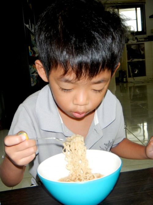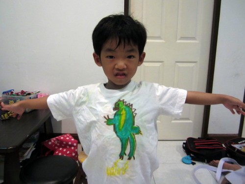 Max and Mina made their own t-shirts at school – I wish they’d made them in my size! The writing under the artwork is their names in Thai script.