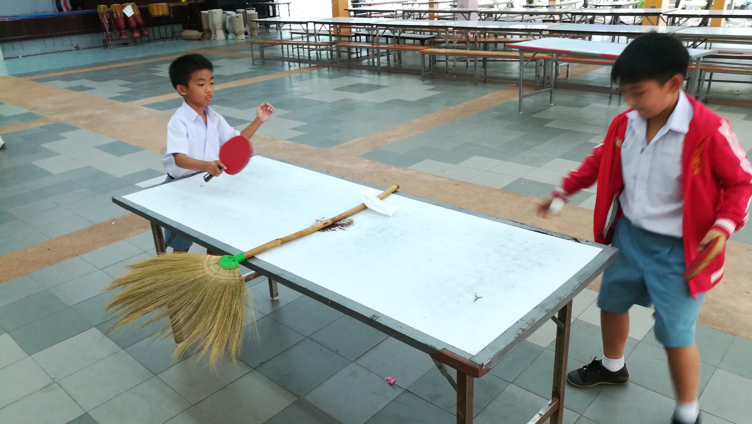 I love the way kids can adapt the idea of ping pong and have so much fun!