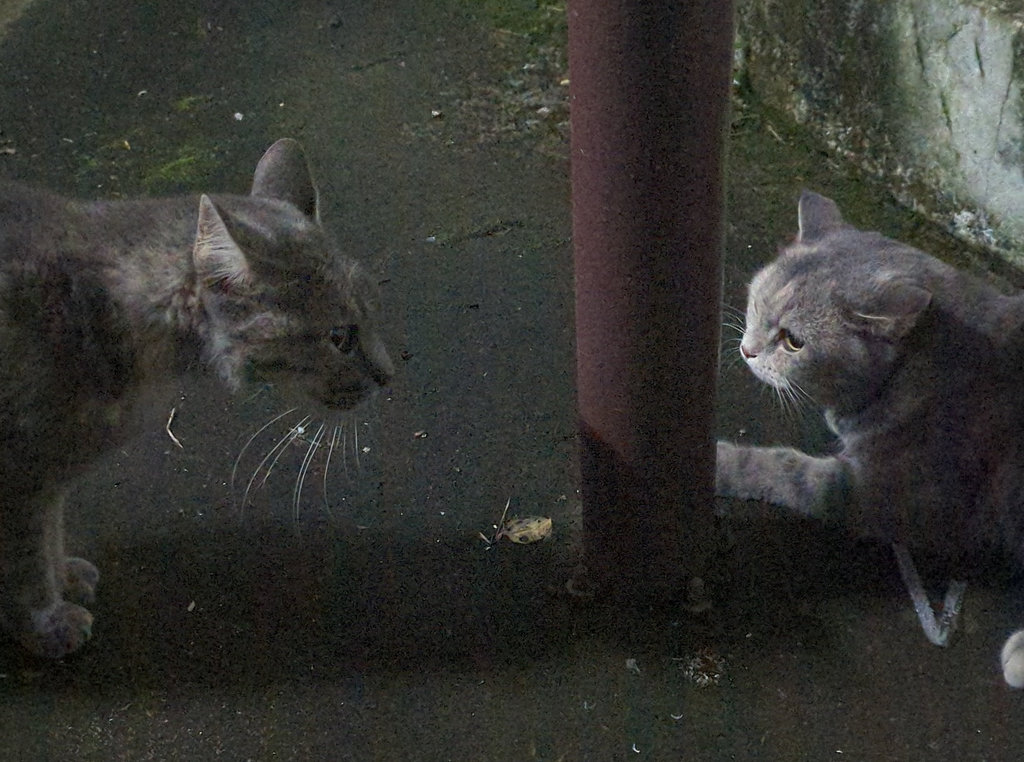 This soft indoor cat came into our backyard and Pickle was like nuh uh.