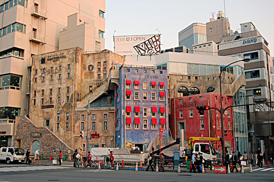 (click to enlarge) A new love hotel shopping center (see comments) being put up in Kobe. I love my new camera.
