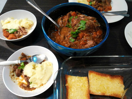 Beef Stew & Garlic Mashed Potatoes (and Garlic Bomb Bread)