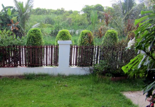 Awesome view! …and the biggest eggplants of this round Asian variety I have ever seen. This is, however, the only vineyard I’ve ever seen with fake grapevines (presumably for evergreen photo props).