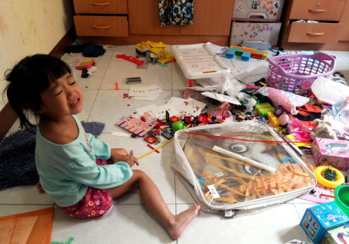 to the command: “Mina, clean your room!” Please notice the glorious presence of Doubly Unhappy Mini Air Hockey Table (Mr. Frowny) in the room. — Yes, I’ve posted two Mina pics in a row. Max will get his turn soon, I promise.