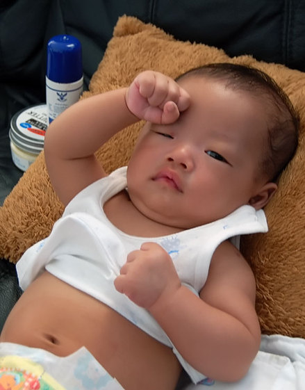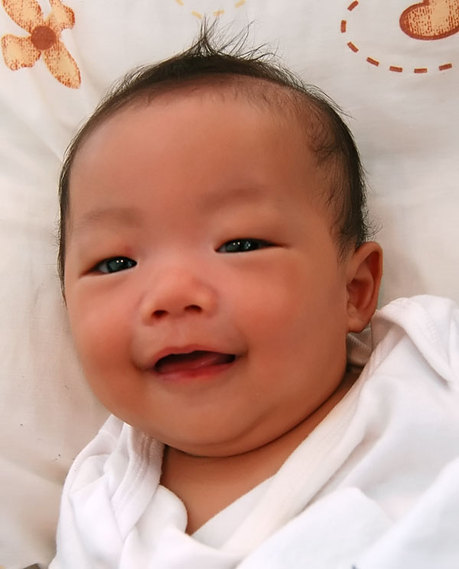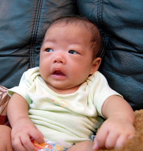 Homebiscuit now weighs 5.8 kilograms (12.8 pounds). (Birth weight was 2.5 kilos.)
