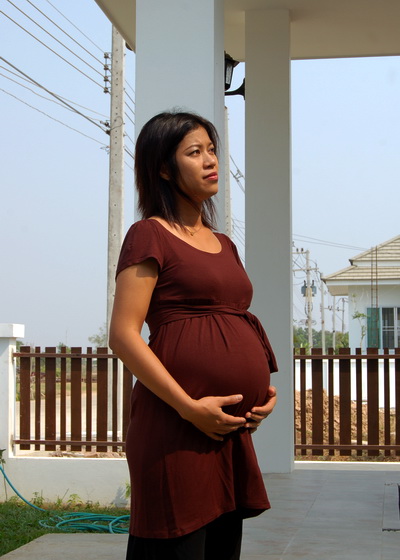 From a couple weeks ago, Nam pondering as baby kicks her bladder: