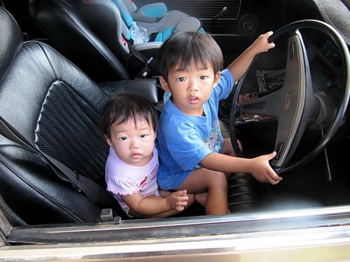 We’ve been having a run of bad car luck as of late. A couple weeks ago, a cop from Khon Kaen backed into our parked Cefiro and broke off the front license plate holder. Nam saw it happen from the pediatrician’s clinic across the street where she had taken Max for a booster shot. She took it to my pal Ot’s shop and got it replaced (on the cop’s dime, of course). The very next day, I lightly clipped a scooter that was running the wrong way down the street and crossed in front of me as I was waiting to turn out. The young female rider must have known…