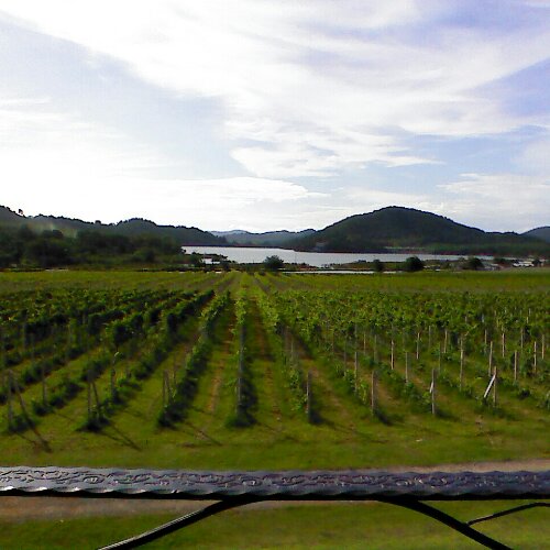 Awesome view! …and the biggest eggplants of this round Asian variety I have ever seen. This is, however, the only vineyard I’ve ever seen with fake grapevines (presumably for evergreen photo props).