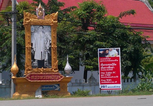 I took this photo a couple months ago out toward the local ostrich farm. The political party that put tons of these signs up on all the roads won Sunday’s elections, so I guess Max and Mina will be getting their ThaiPads soon…