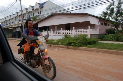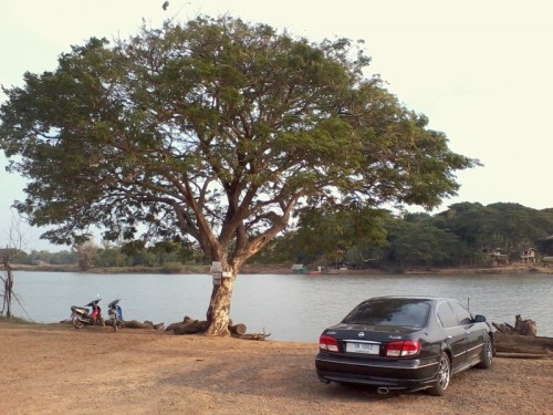 A couple months ago, when it was still “cold,” we visited a temple that we’d been hearing of for a while, Wat Ban Donnad (Wat Ban Don Nad?). At the end of a long, broken dirt road that runs through several villages, we ended up here: You can see our destination out on the island: We honked our horn, and a young monk on a small outboard came putt-putting out. Max saw the boat and it was on. Max was wearing his inflatable life jacket all day in anticipation of riding on a boat. The monk was shy, so I spared him the embarrassment of a face shot. There’s no…