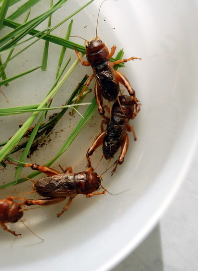 These went really well with the snake soup last week. We forgot to take photos of them past the prep stage, though. They were salted and deep fried, and then their heads were taken off which allowed easy deveining ala shrimp. As far as I could tell they were a cross between a cricket and a potato bug (mmm, potatoes), but as large as your thumb.