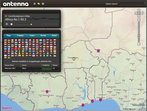 Antenna, an application based on Adobe Air is easily installed from this site with a couple clicks and is one of the best online radio apps I’ve ever used because of its clever interface. The approach is so novel that it actually turned me back onto online radio after forgetting about it for ten years or so. Screen shot: