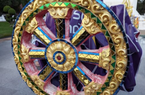 This is a video from last week. The whole funeral lasted seven days. I have read online about soil or water being provided from the royal institution for these affairs; in this case it was a candle with a bundle of flowers (made from corn husks and fragrant tree bark) that was eventually lit by a representative from Bangkok. I need to find out more about this, though. This was my second time at a funeral with these honors, and I learned a lot more this time. It was a fitting and touching sendoff for Nam’s grandmother.