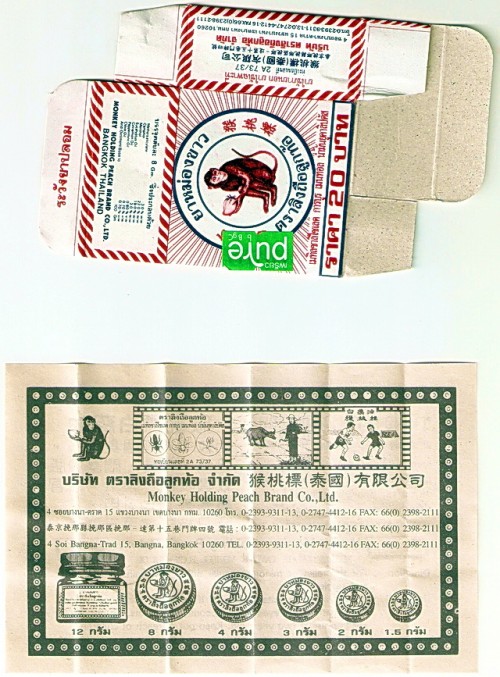 Monkey Holding Peach Brand Co., Ltd., or alternatively, White Monkey Holding Peach Brand, are the manufacturers of the original “Tiger Balm” type ointment. This is the OG shit right here. They deserve your respect just for having the coolest brand and company name… If I ever have the chance to work with them, I’ll do it just so I can write it on my CV.