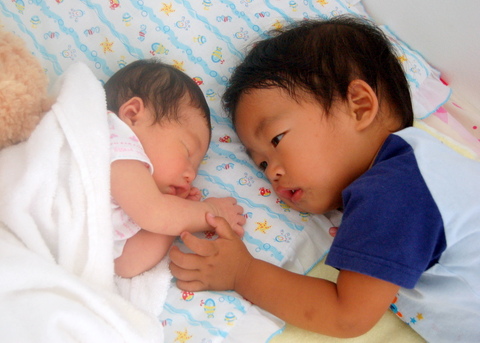 …which I take as an extremely fortuitous sign. …and at last, I have time to blog again, all because of our Baby Bjorn carrier (thanks mom and dad!). I didn’t use it with Max for the first few months partly because he was so small (born 1 month early at 2,400 grams), but today I noticed that the label said it could be used for babies over 3.2 (?) kilos. Mina is 4.2 kilos as of yesterday (born at 3.5 and naturally dropped a bit of weight the first few days).