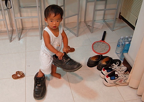 We just figured out today (the photo was taken two weeks ago) that he was imitating one of his favorite Baby Signing Time DVDs.