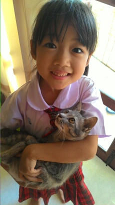 Mina carries around her kitten like a stuffed animal and makes it have tea parties and stuff. This is a feral cat that was born outside and gets in noisy fights every night, but it loves her. Posted from WordPress for Android