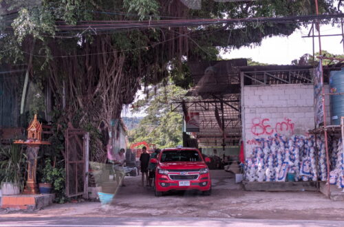 A couple months ago, when it was still “cold,” we visited a temple that we’d been hearing of for a while, Wat Ban Donnad (Wat Ban Don Nad?). At the end of a long, broken dirt road that runs through several villages, we ended up here: You can see our destination out on the island: We honked our horn, and a young monk on a small outboard came putt-putting out. Max saw the boat and it was on. Max was wearing his inflatable life jacket all day in anticipation of riding on a boat. The monk was shy, so I spared him the embarrassment of a face shot. There’s no…